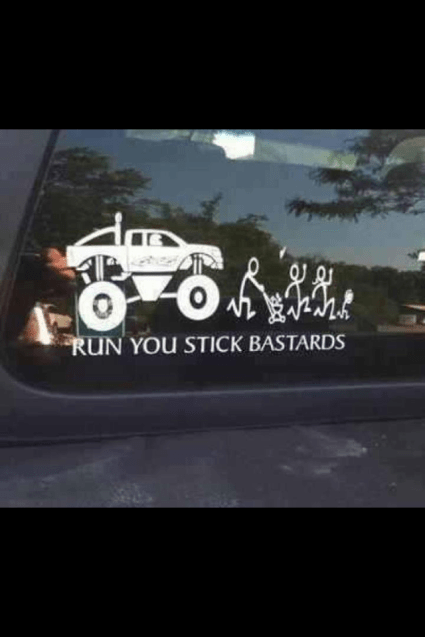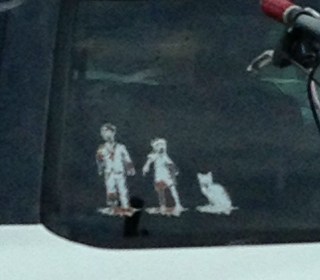 It seems everywhere I look I see yet another vehicle with a stick figure family in the back glass. Surely I am not the only one who finds this trend both disturbing and annoying? Is it really necessary to announce to the world that you are married with 2.3 children, a dog, a cat, and a turtle via a vinyl sticker on the back of your minivan or SUV? (And for that matter, is it really safe?)